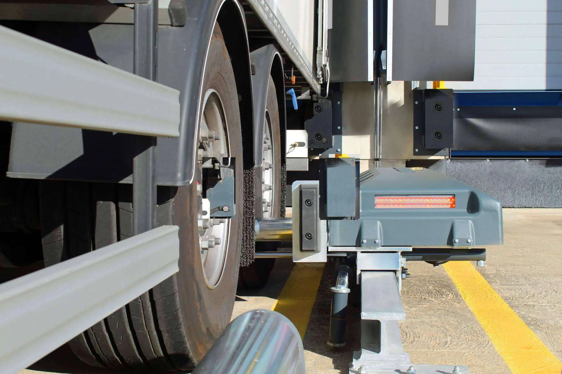 La empresa explica que su equipo se basa en un brazo de sujeción que inmoviliza las ruedas del vehículo, impidiendo en todo momento que se produzca algún tipo de movimiento. Por lo tanto, se evita el desplazamiento accidental, así como la puesta en marcha del camión durante la carga o descarga.