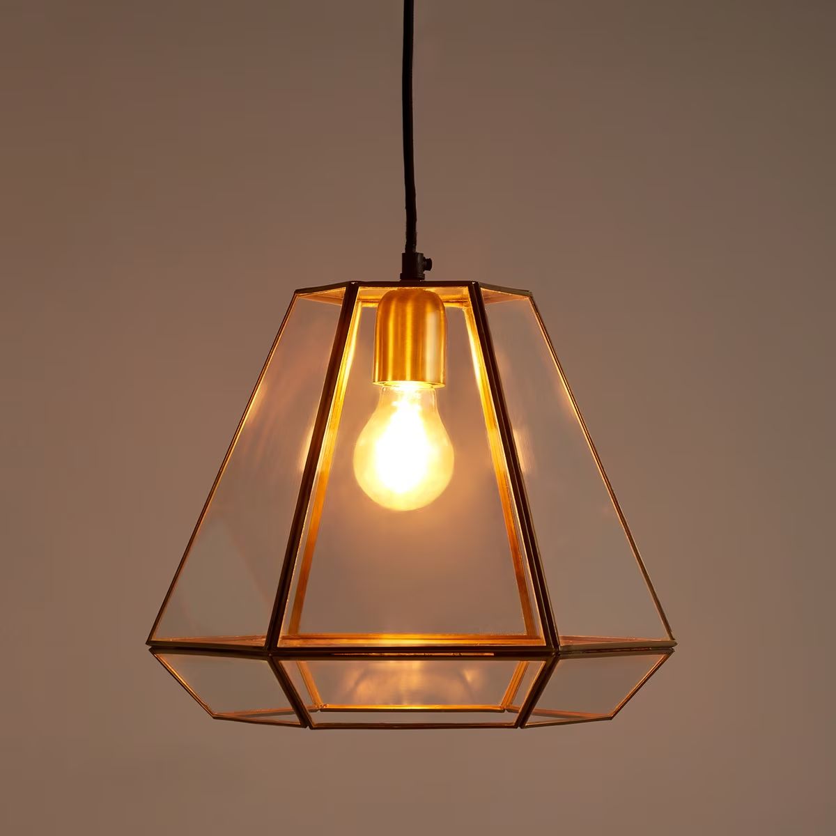 La lámpara de techo hexagonal Bera de El Corte Inglés es una verdadera joya para aquellos que buscan agregar un toque vintage y original a su decoración. Fabricada en cristal con un armazón de metal y un elegante acabado de latón envejecido, esta lámpara irradia un encanto único que es perfecto para decoraciones retro, clásicas e incluso rústicas. Con un precio de 89,95 €, esta pieza es aún más atractiva durante el período de rebajas de El Corte Inglés.