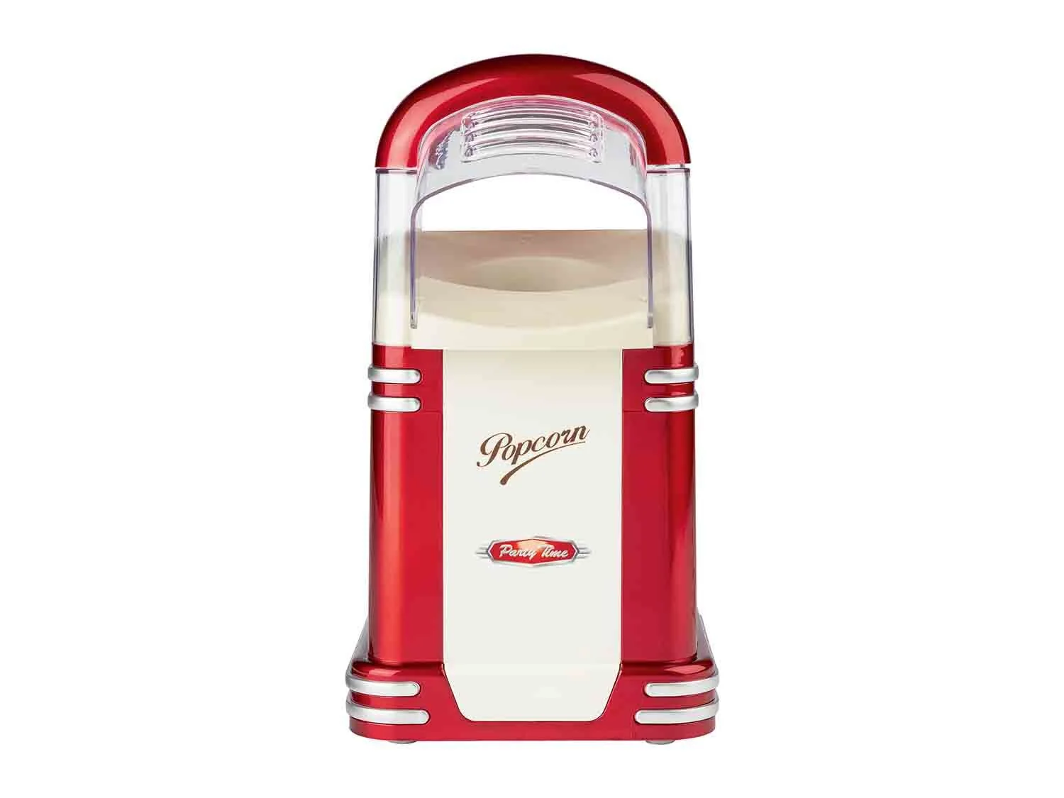 Llévate a casa la máquina de palomitas Ariete® de 1100 W, con un diseño compacto y retro de los años 50. Este aparato, ideal para un snack natural y sin grasa, utiliza el método de cocción por aire caliente para preparar palomitas fragantes y ligeras en solo unos minutos. ¡Perfecto para animar fiestas y veladas familiares!