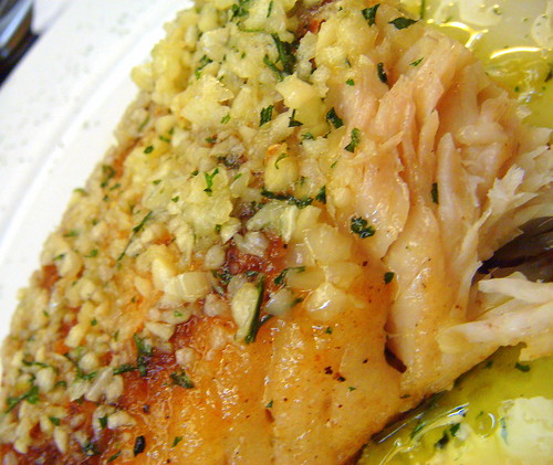 - Retira la corvina del horno y espolvorea con perejil fresco picado.
