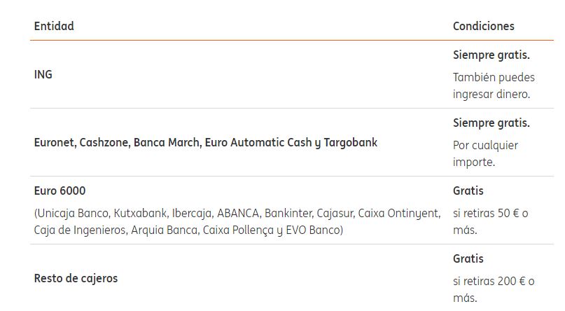 De este modo, los clientes de ING tienen 12.500 cajeros a su disposición en los que puede sacar gratis si la disposición es de 50 euros o más. También tienen 43.700 cajeros en España en los que sacan sin coste si la retirada de efectivo es de 200 euros o más, según destacan fuentes de ING.