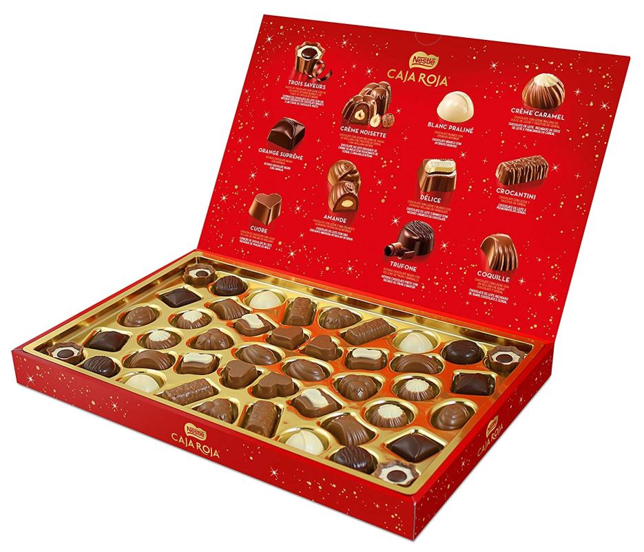 La Caja Roja de Nestlé es una caja de bombones que forma parte de nuestra vida, sin importar nuestra edad. Este surtido se fabrica en el centro de Nestlé en La Penilla de Cayón (Cantabria), utilizando leche fresca y una cuidadosa selección de cacao de alta calidad y cultivo sostenible al 100%. Curiosamente, fueron los propios consumidores quienes la apodaron como la «caja roja», y el nombre se quedó. La OCU describe los bombones de Nestlé Caja Roja como un surtido variado, con combinaciones de crujiente y cremosidad, y un chocolate suave. Cada bombón aporta 50 kcal y su precio es de 4,9 euros por cada 200 g.