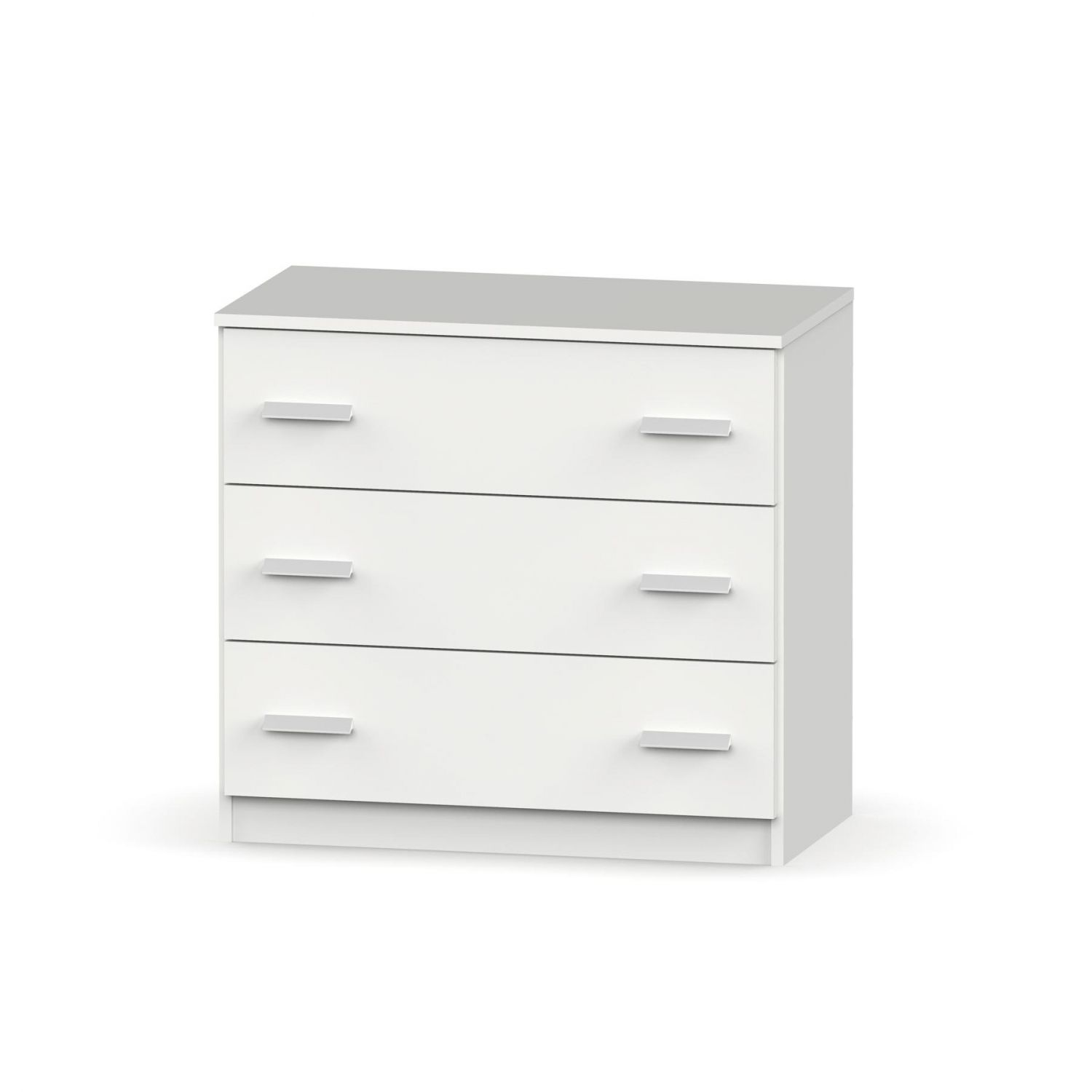 La cómoda de 3 cajones MUEBLES PITARCH Eko, con unas dimensiones de 69,5x74x40 cm y un elegante acabado en blanco, es una excelente opción para organizar tu dormitorio de manera práctica y funcional. Fabricada con aglomerado de alta calidad y revestida con melamina, esta cómoda garantiza durabilidad y resistencia a lo largo del tiempo. Su diseño moderno y minimalista la convierte en un complemento versátil que se adapta a cualquier estilo decorativo.