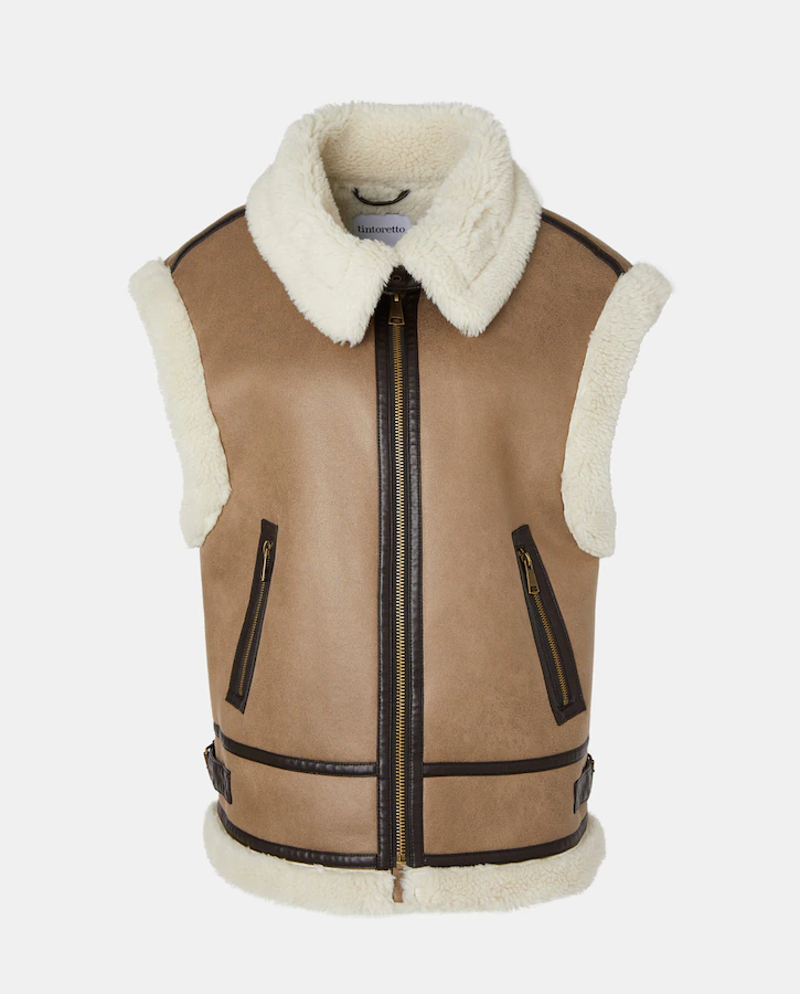 Este chaleco de pelo para mujer es una pieza imprescindible para el invierno. Confeccionado en 100% poliéster, su exterior en color camel combina perfectamente con el forro de borreguito en el interior, proporcionando calidez y estilo.