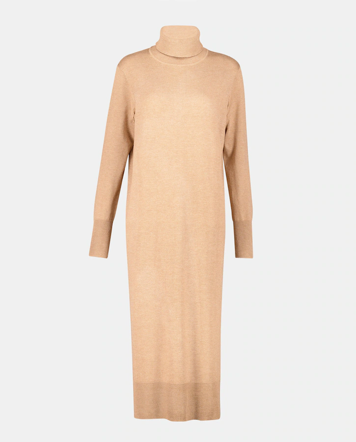 Este vestido en tricot con cuello vuelto es una opción perfecta para los amantes del punto. Disponible en dos colores, gris y camel, su corte midi es recto y holgado, lo que lo hace muy cómodo y confortable de llevar. Es ideal tanto para estilismos arreglados como para momentos informales, lo que lo convierte en una prenda muy versátil. Además, cuenta con una abertura en un lateral en el bajo, añadiendo un toque de estilo adicional.