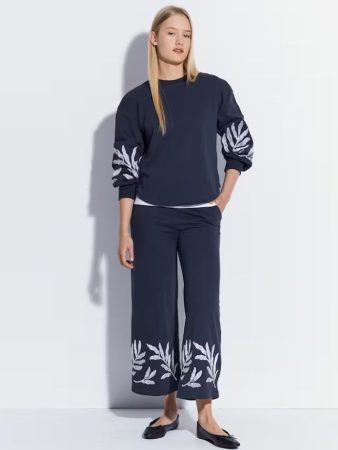 Lo que distingue al chándal de Sfera son los pequeños detalles que lo hacen destacar. Desde las mangas ligeramente abullonadas hasta el cuello redondo y el detalle de flores en color blanco que adornan los puños de la sudadera, cada elemento está cuidadosamente diseñado para añadir un toque de frescura y feminidad al conjunto.
