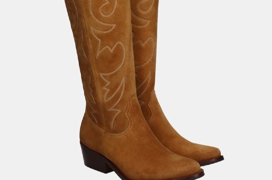 4Botas de mujer estilo cowboy altas en serraje con bordados y tacón bloque