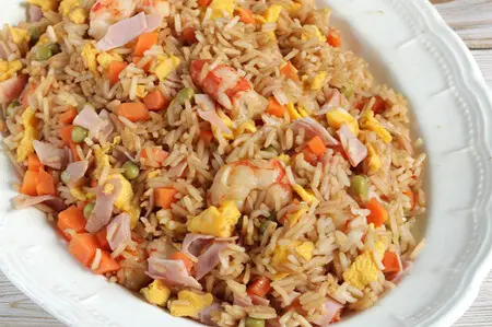 - Decora y sirve con estilo: Una vez que el arroz tres delicias esté listo, puedes decorarlo con cebollino picado, semillas de sésamo o rodajas de limón para darle un toque final. Sirve el arroz caliente en platos individuales y acompáñalo con palillos chinos para una experiencia auténtica.