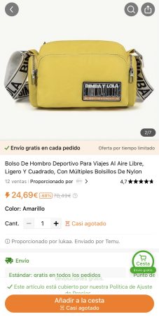 Además, a esto se le suma que, cuando se trata de productos falsos con marcas, Temu hace un esfuerzo para que los clientes tengan su pedido en un plazo de cinco días. Sin embargo, cuando el cliente abre el paquete se da cuenta qué no se parece a lo que había pedido y, evidentemente, el bolso no tiene el nombre de la marca, ni en el bolso ni en la cinta para colgar.