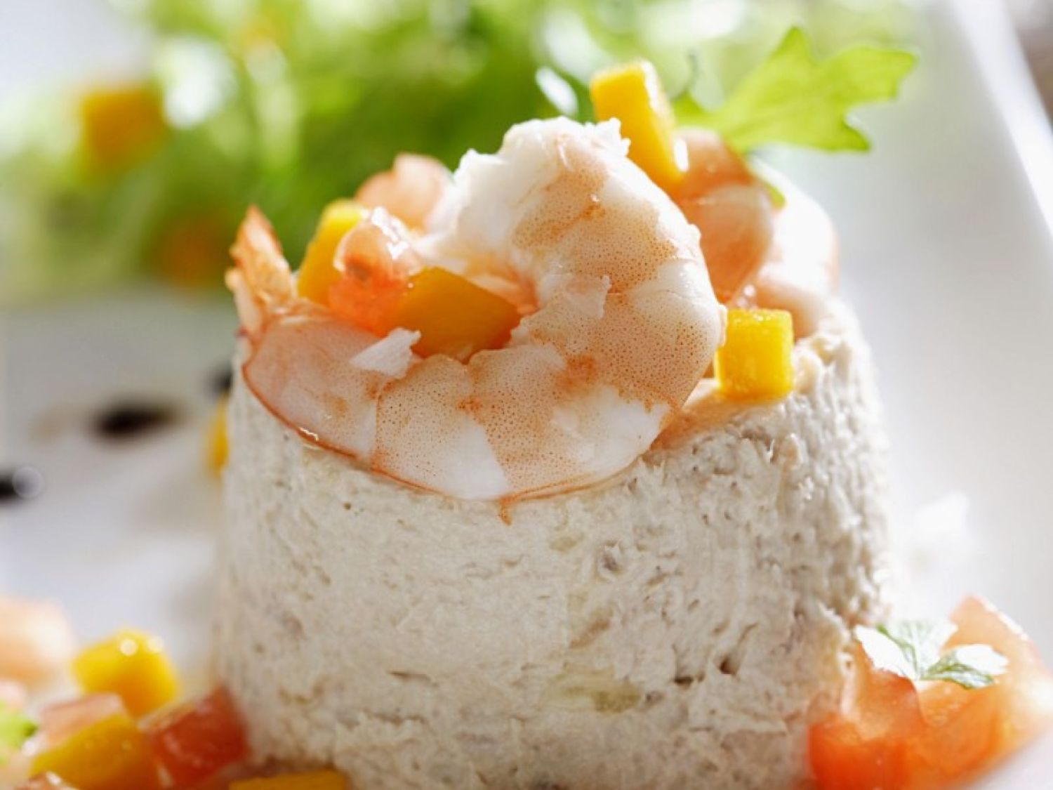 En el vaso de una batidora, coloca el atún escurrido, el huevo, la leche evaporada, el tomate frito, los palitos de surimi, el pan de molde, el coñac y una pizca de sal. Tritura todo bien con la batidora hasta obtener una mezcla homogénea. Reparte la pasta en cuatro moldes de silicona para muffins.