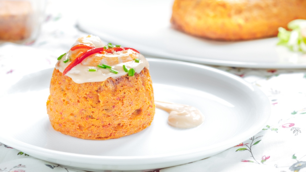 Vierte la mezcla en moldes de silicona aptos para microondas. Si no tienes moldes de silicona, también puedes usar un molde de cristal o un cuenco, pero asegúrate de engrasarlos bien para facilitar el desmolde.