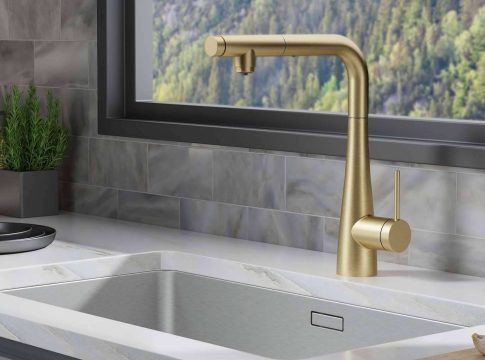 Destaca, por ejemplo, el modelo SPLIT, donde caño y base se integran en total armonía combinando formas curvilíneas con el caño en forma de “L”. Asimismo, hay tres opciones de acabados: cromo, negro mate y oro cepillado.