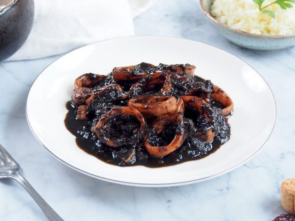 - Servir los calamares en su tinta acompañados de arroz blanco o patatas cocidas.