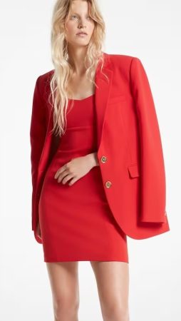 Este blazer de mujer en color rojo, evoca una estética masculina con esta blazer de crepé entallado. Tiene una silueta holgada que se completa con solapas con muesca y un cierre clásico con dos botones. Combínala con un pantalón a juego y una camiseta de tirantes corta. Esta disponible en tres colores distintos para que puedas elegir el que más se adapte a tu estilo.