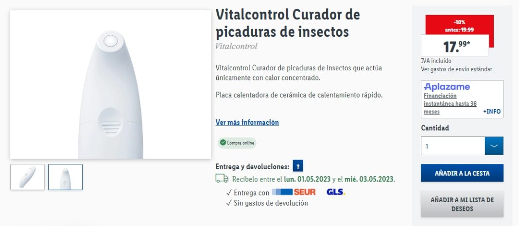 Así que Lidl ha ampliado su sección de jardín con nuevos productos, y esta semana destaca el curador de picaduras de insectos de Vitacontrol, que ofrece un método efectivo y rápido para aliviar las molestias de las picaduras de insectos.