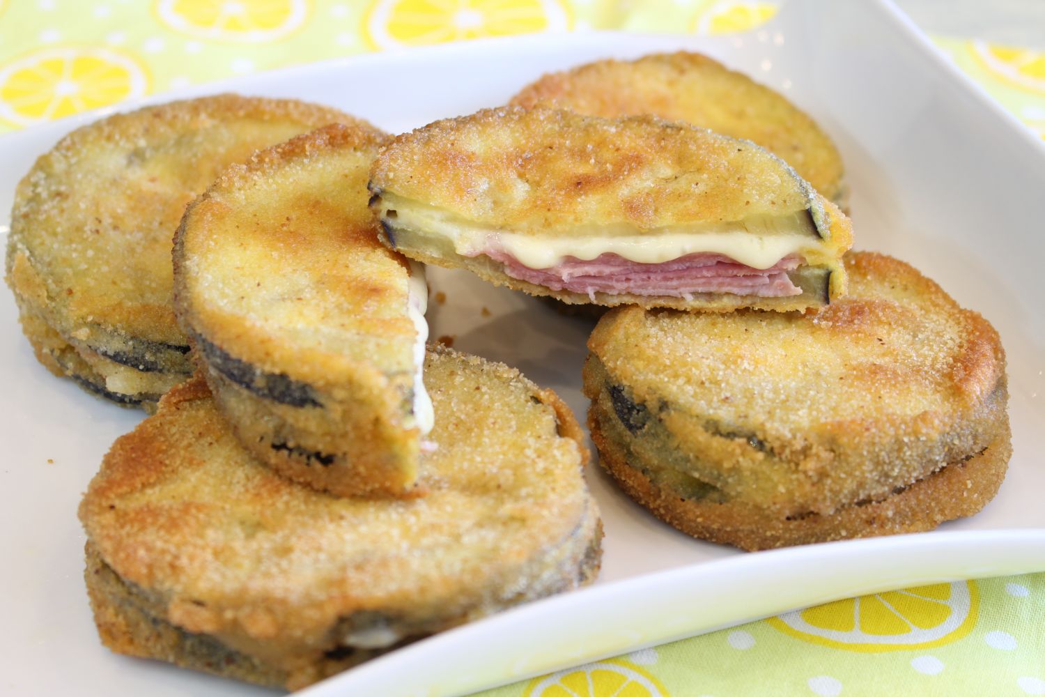 Las berenjenas con jamón y queso son una variante al tradicional San Jacobo, igual de fácil y sabroso pero un poco más saludable. Es una opción excelente para conseguir que los más pequeños coman más verduras, además las berenjenas tienen una textura muy agradable y tierna para los niños. Solamente hace falta una berenjena bien grande, y elegir el relleno que se quiera. Nosotros proponemos la clásica mezcla de jamón y queso, pero se puede hacer con otros ingredientes al gusto. Después solo hay que emparedarlas y comerlas bien calentitas, recién hechas y crujientes.