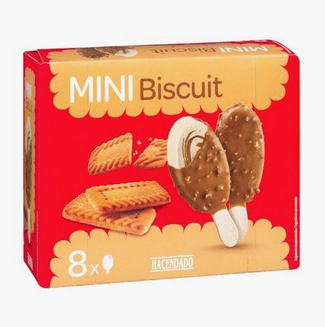 Lo que ha pasado es que el supermercado valenciano ha “clonado” estos helados. Los “mini bombón biscuit” son helados hechos con crema de una galleta similar a la Lotus, todo recubierto por una deliciosa cobertura de chocolate con leche almendrado. La caja viene con 8 pequeños helados a un precio que ronda los 3 euros.
