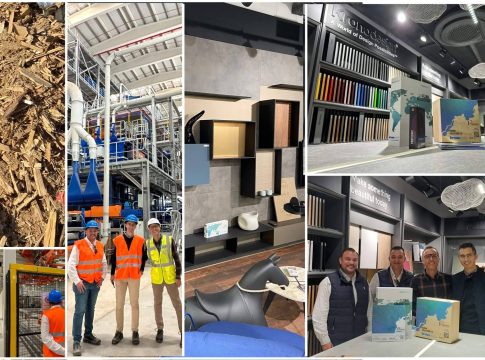 En primer lugar, con ellos visitaron la nueva planta industrial construida en Tortosa. Esta instalación, encargada del tratamiento, fabricación y logística de sus tableros, cuenta con 25 hectáreas de terreno y es 100 % sostenible, siendo capaces de procesar residuos de madera para fabricar nuevos tableros con una filosofía de sostenibilidad. Además, han incorporado placas solares para alimentar las líneas de producción con energía limpia y renovable.