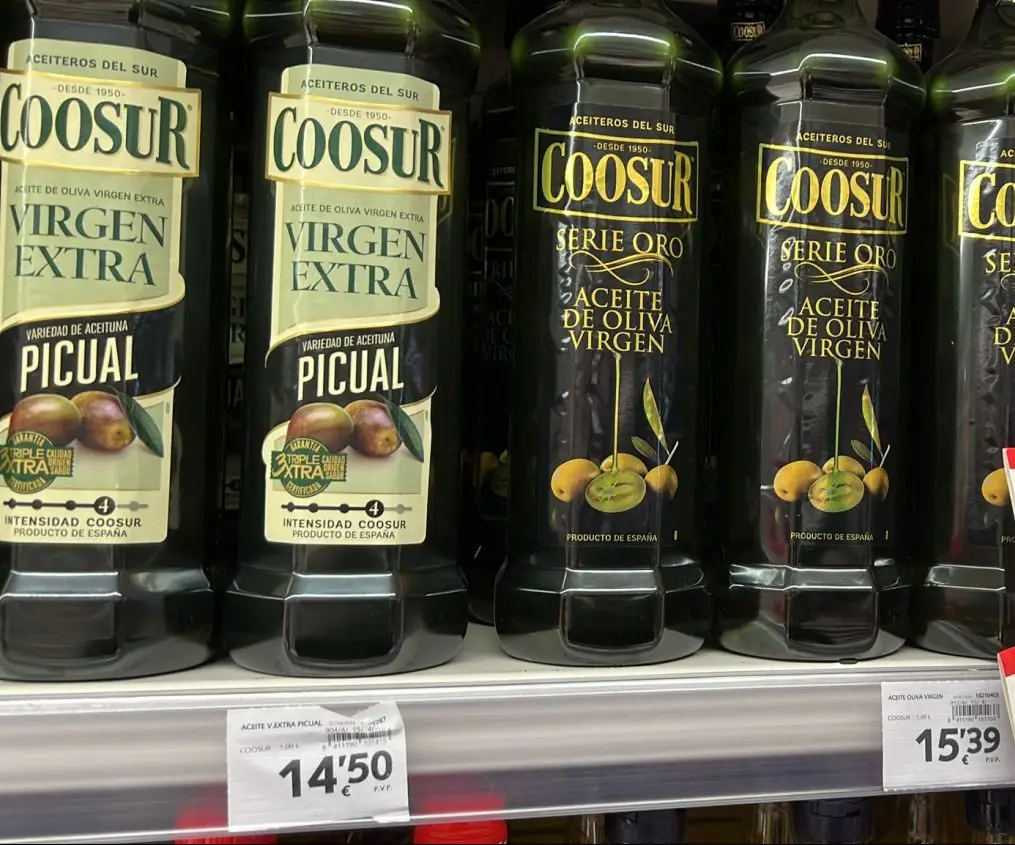 Por supuesto, el aceite de oliva virgen no tiene un precio tan desorbitado. En la cadena de distribución vasca, no obstante, sí cuenta con el precio más elevado que se sitúa en 14,50 euros, el mismo coste que el de oliva virgen. Pero, en Carrefour se sitúa en los 12,89 euros. Y la alternativa más económica la maneja el supermercado español Dia donde los consumidores podrán comprar el aceite de oliva virgen de Coosur a un precio de 11,99 euros.