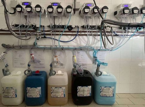 Dosificación automática de productos en todas las áreas: lavandería, cocinas y pisos. Ahorra recursos y mejora la eficiencia y el control en el uso de productos de limpieza, así como proporciona seguridad y evita la manipulación por parte de los operarios.