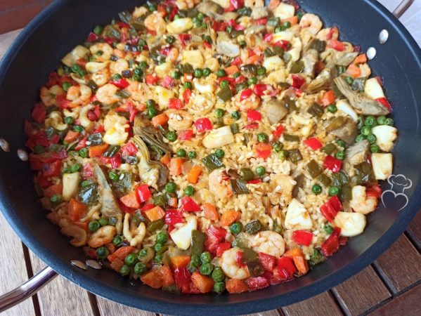 - Variante Vegetariana: Si prefieres una versión vegetariana de este plato, puedes omitir los mariscos y agregar más verduras, como alcachofas, zanahorias y champiñones.