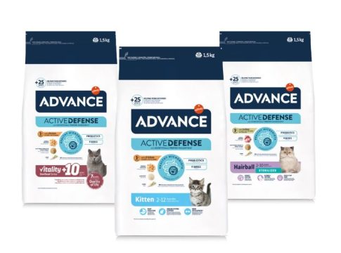 Tras lanzar su nueva receta para perros en noviembre, Advance también ha impulsado su fórmula Active Defense para gatos de distintas edades y condiciones fisiológicas. Esta incluye prebióticos naturales, que contribuyen a nutrir a las bacterias beneficiosas de la microbiota intestinal, así como fibras de trigo, que promueven la salud digestiva.