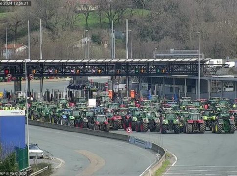 Diferentes columnas de tractores han partido desde las 10.30 horas de la mañana desde distintos municipios de Guipúzcoa y Navarra hasta el peaje de la AP-8 en la frontera de Irún, para sumarse a la movilización convocada por los agricultores franceses. Los trabajadores del sector primario prevén tener cortado el paso fronterizo con esa «tractorada».