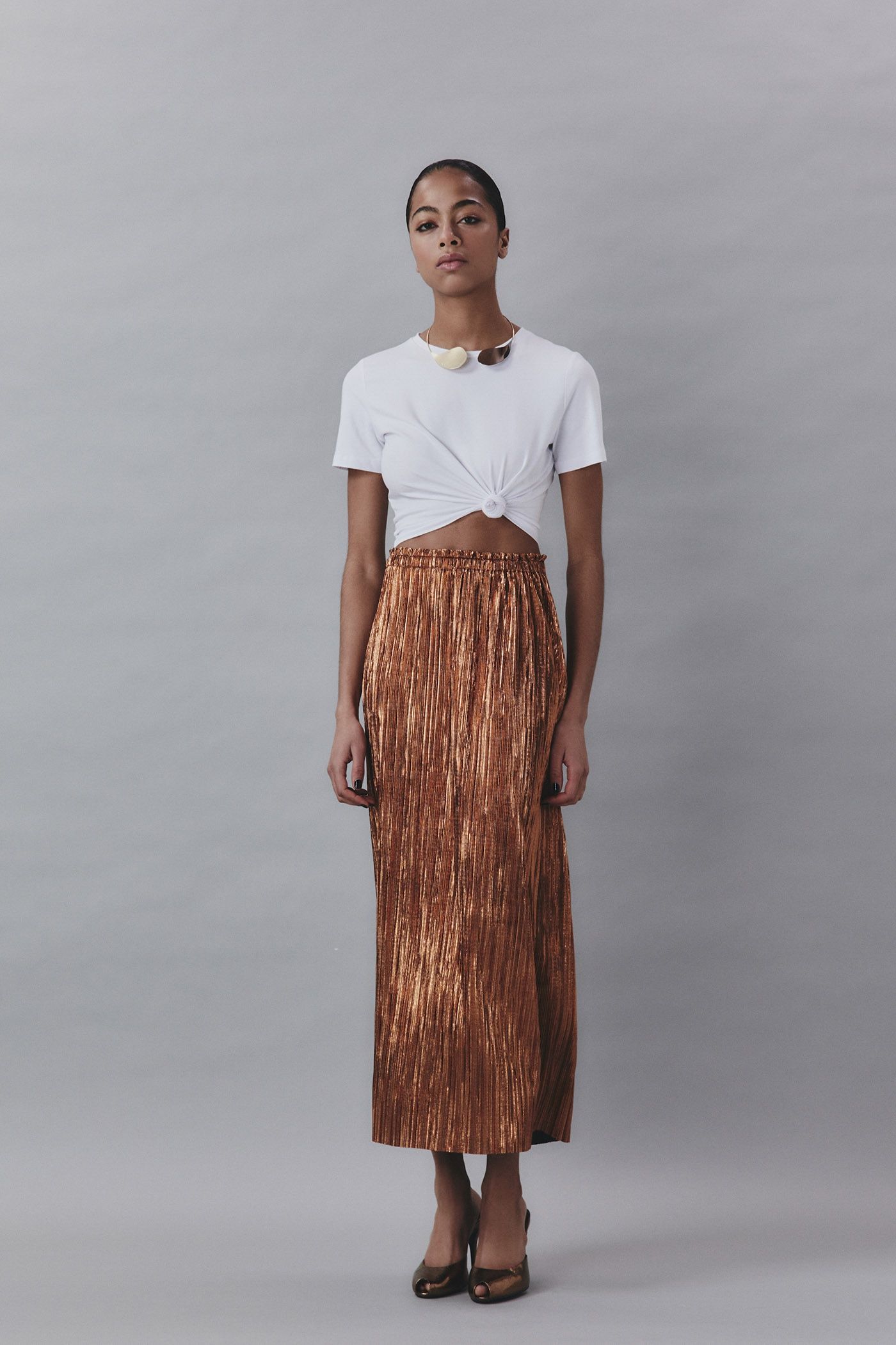 Aprovechar la oferta de Sfera es una decisión inteligente, ya que estas prendas atemporales y de larga duración son ideales para lucir durante el entretiempo que nos conduce hacia la primavera. Con su estilo versátil y su calidad indiscutible, esta falda plisada midi es una adición imprescindible para cualquier armario de temporada.