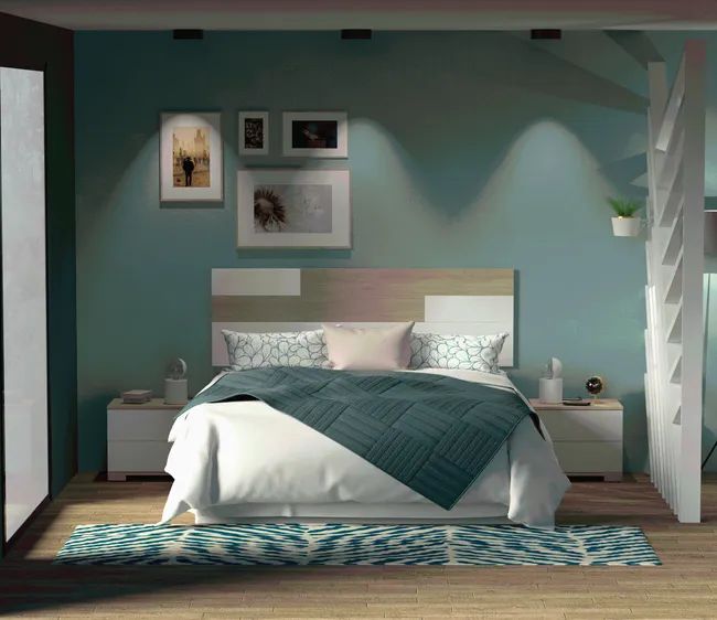 4Cabecero de cama + mesillas Erika blanco y roble