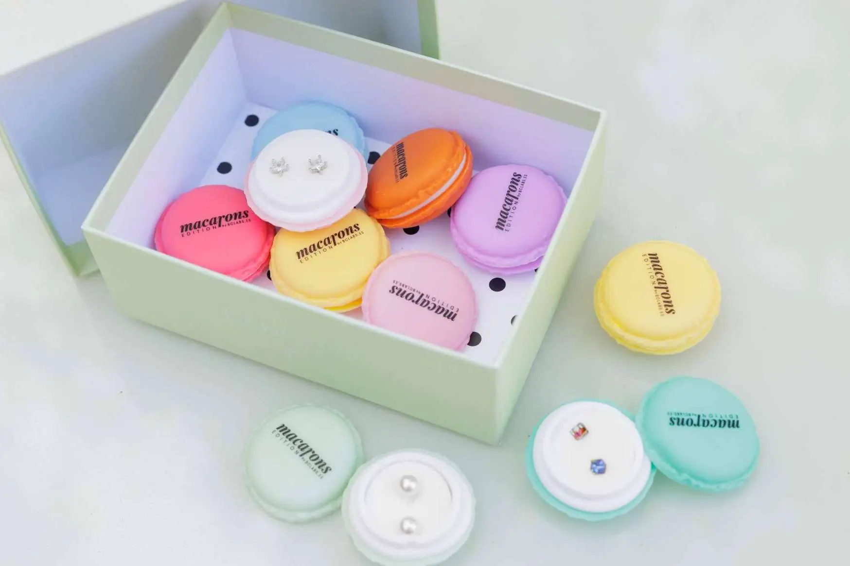 Por otro lado, la gama Macarons Edition tiene otro tipo de envase original que se asemeja a este dulce de origen francés. Esta colección ofrece más de 20 modelos y colores para elegir, entre los que es posible encontrar símbolos de infinito, perlas, flores, diamantes y gemas. Para contar con varios de estos modelos al mismo tiempo es posible adquirir un Sweet Pack. Se trata de una caja de 4 macarons que vienen con distintos pendientes.