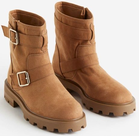 Y otra perfecta opción son las botas con suela gruesa de H&M. Confeccionadas con un tejido de ante en un tono camel que combina con todo, estas botas son un básico imprescindible en cualquier armario de primavera. Con detalles como trabillas ajustables y una hebilla de metal que añaden un toque de estilo, estas botas son ideales para el día a día. Y con un precio reducido de 21,99 euros, en lugar de los 39,99 euros originales, estas botas son una ganga que no puedes dejar pasar.
