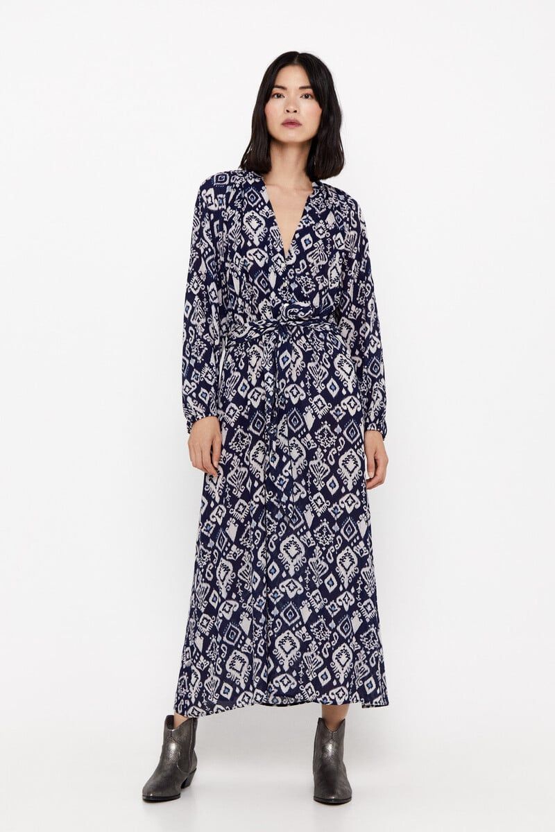 CORTEFIEL te presenta este encantador vestido estampado a un precio irresistible de solo 19,99 €, con un descuento del 75% sobre su valor original de 79,99 €. Disponible en estampados azul, verde y multicolor, este vestido destaca por su diseño versátil y sostenible. Confeccionado en tejido sostenible, este vestido no solo es una opción estilosa, sino también consciente con el medio ambiente. Presenta un cuello mao desmontable con botones y mangas largas con volumen en los puños, lo que añade un toque de elegancia y sofisticación. Además, incluye un cinturón del mismo tejido para realzar la figura y agregar un detalle adicional.