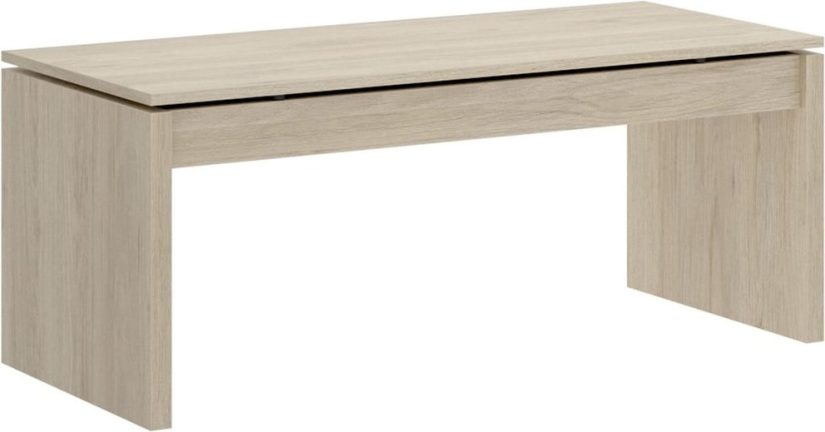 Además, este diseño se presenta en un modelo comercial con el nombre «LUCA». Su superficie de color natural se complementa con una estructura en tono beige, creando una armonía visual que encanta a primera vista. Con unas dimensiones de 102 x 50 x 43-53 cm (largo x ancho x alto-alto elevada), esta mesa rectangular elevable se adapta a una variedad de espacios y necesidades.