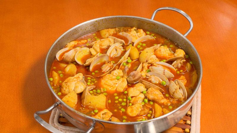 Imagina el aroma embriagador que se desprende de la cazuela mientras el pescado y las almejas se cocinan lentamente en su jugo, impregnando la cocina con su fragancia irresistible. El sonido de la salsa burbujeante, la vista de los colores vivos y la textura tentadora de los ingredientes se combinan para crear una experiencia gastronómica única y memorable.