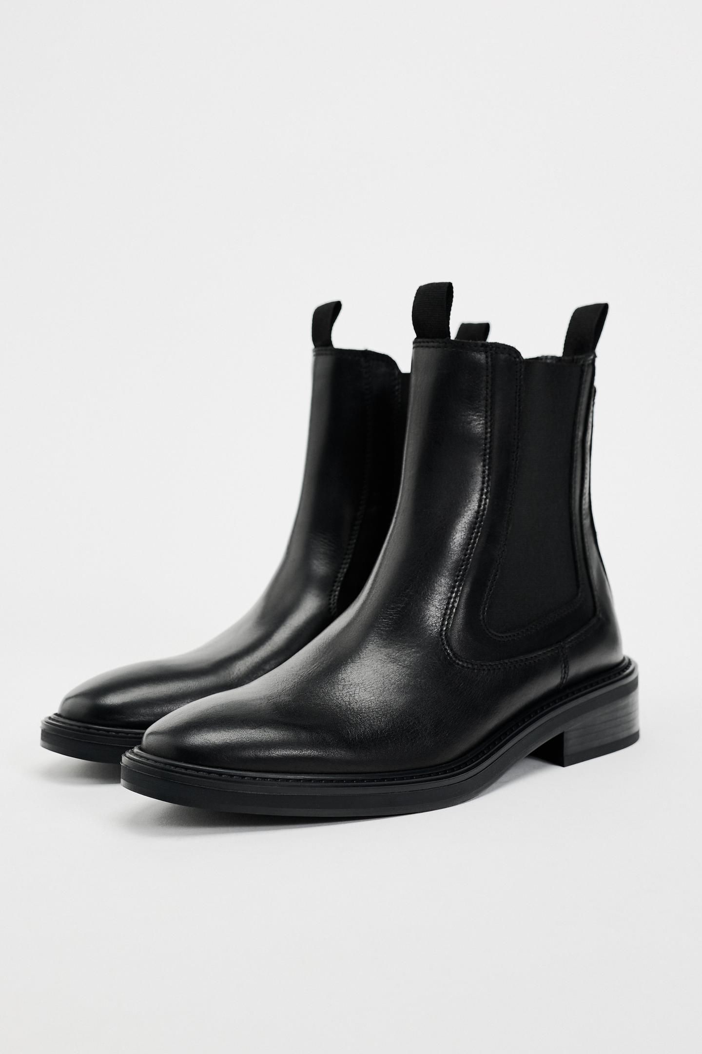 Sumérgete en la elegancia y el confort con el botín Chelsea de piel de Zara. Este versátil zapato tipo botín plano presenta un diseño clásico con paneles elásticos en los laterales y tiradores que añaden un toque de sofisticación. Fabricado en piel de alta calidad, garantiza durabilidad y resistencia. Con una altura de suela de 4 cm, ofrece el equilibrio perfecto entre estilo y comodidad para cualquier ocasión. A un precio de 59,95 EUR, esta prenda refleja una excelente relación calidad-precio, con materiales duraderos que aseguran una inversión inteligente a largo plazo.