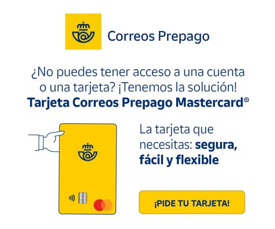 Para adquirir la Tarjeta Correos Prepago Mastercard®, el proceso es sencillo y rápido. Lo puedes contratar desde la web o en cualquiera de sus casi 2.400 oficinas solo con el DNI o NIE. Si no dispones de estos documentos no te preocupes, el personal de oficina te indicará la documentación necesaria que debes presentar ¡Una auténtica revolución de las finanzas!