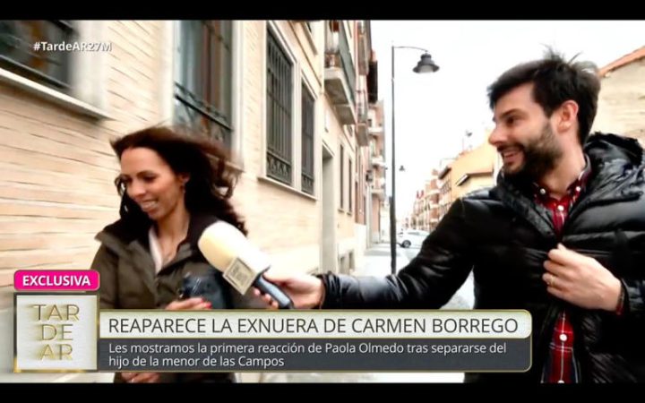 La protagonista Paola Olmedo fue interceptada por un colaborador del programa «TardeAR», y con toda amabilidad y buenos modales trato de esquivar todo tipo de comentario para no hablar sobre lo sucedido con el hijo de Carmen Borrego, Almoguera. «Me has asustado», expresó Olmedo, ya que no se esperaba ser emboscada por la prensa. Sin ánimos de habar del tema, la exnuera de a directora de televisión, dijo que se encontraba muy bien.