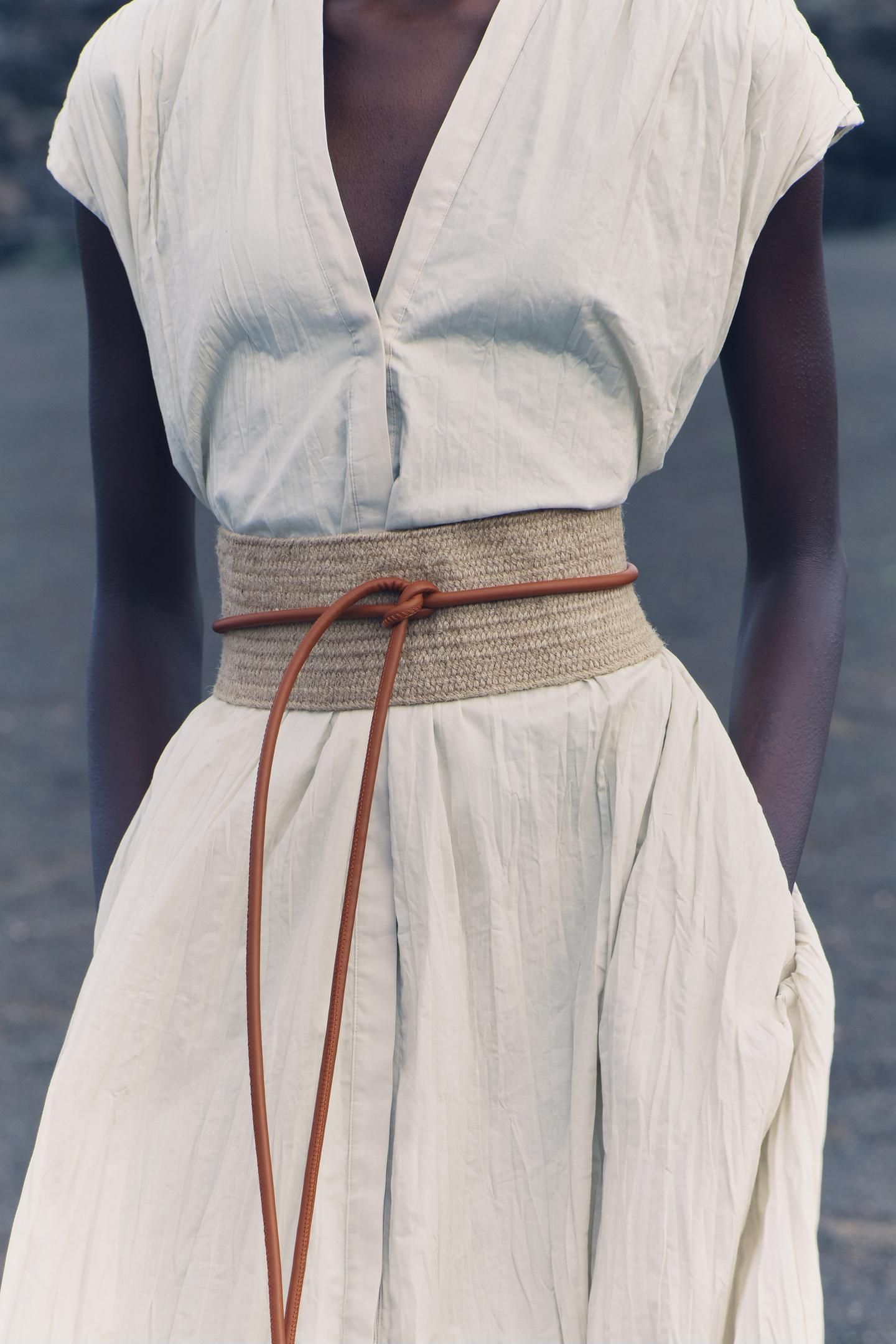 Zara presenta su innovador Cinturón Fajín Elástico, una pieza versátil y elegante que se convierte en el complemento perfecto para tus conjuntos primaverales. Confeccionado en yute y elastano, este cinturón de 9 cm de ancho ofrece un ajuste cómodo y seguro gracias a su elástico. Su diseño moderno se realza con un cierre de cordón acabado en una pieza metálica, agregando un toque de sofisticación a cualquier atuendo. Y lo mejor de todo es su precio accesible de tan solo 17,95 EUR, una oferta irresistible que Zara brinda a sus clientes.
