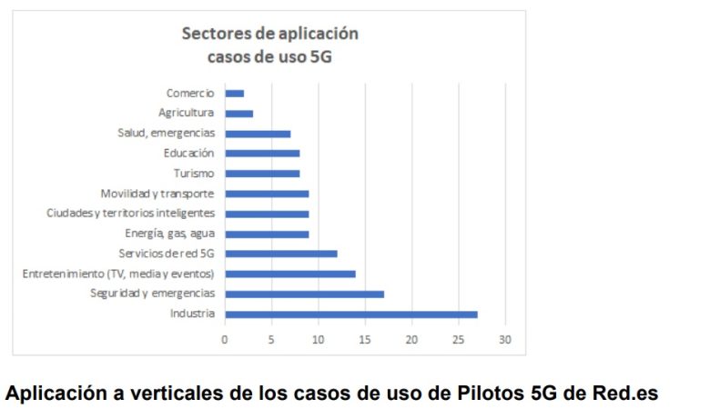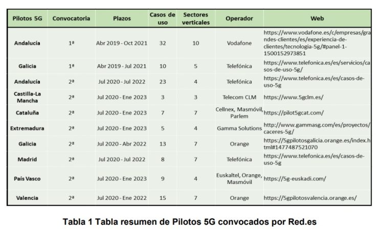 El informe destaca algunos proyectos piloto que generaron una estela que han seguido los demás y han servido para que la implantación de este tipo de redes haya sido siempre una opción a tener en cuenta en cualquiera de los sectores productivos de España. Alguno de estos proyectos han sido privados, pero la mayoría han contado con el empuje de la Administración gracias a las convocatorias de «pruebas piloto» de la entidad pública empresarial Red.es, adscrita al Ministerio para la Transformación Digital y de la Función Pública, de la mano de la Secretaría de Estado de Digitalización e Inteligencia Artificial.