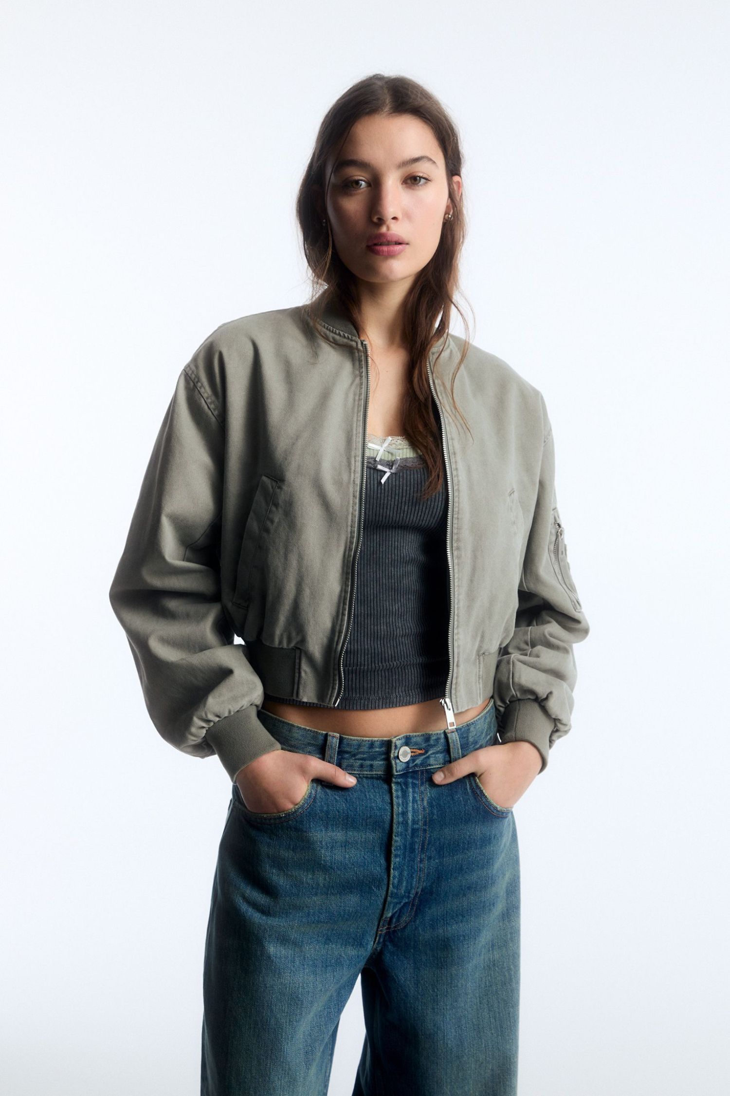 ¡Prepárate para lucir con estilo esta temporada con la chaqueta bomber de Pull&Bear! Con un precio irresistible de 39,99 €, esta prenda es una opción asequible para aquellos que desean añadir un toque de moda a su armario sin romper el banco. Disponible en un vibrante tono verde del ejército, esta chaqueta bomber presenta un ajuste corto y ajustado que realza tu figura, junto con detalles de rib en los puños, mangas y cuello que añaden un toque de estilo adicional.