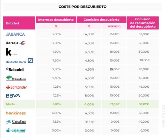 La comisión por descubierto es del 4,5% y mínimo de 15 euros, lo mismo que otras Abanca, Ibercaja u Kutxabank que están por encima, es decir, son más caras, lo que se debe a que su comisión de reclamación del descubierto es más cara que la de Banco Sabadell.