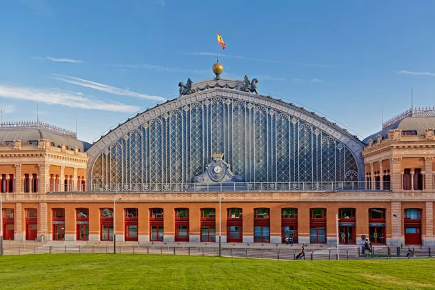 Una de las más famosas de España es la madrileña estación de Atocha, que se caracteriza por estar construida en hierro forjado, según el estilo continental. Se inauguró con el nombre de estación de Mediodía en 1851 y desde entonces experimentó varias ampliaciones. El aspecto exterior es único y destaca por su elegancia y color rojizo, pero por dentro también es un lugar fantástico para recorrer, con una zona acristalada y un cuidado jardín tropical con plantas gigantescas y estanques donde viven un montón de tortugas.