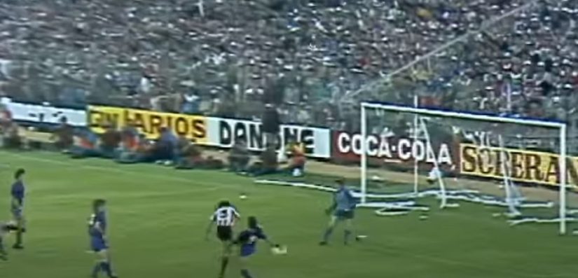 Coca-Cola y Danone tenían sendos cartelones de publicidad estática en el fondo del estadio Santiago Bernabéu en el que el Athletic de Bilbao marcó el gol que hace 40 años le dio el triunfo en la Copa del Rey. Los vascos vencieron en la final al Barcelona de Maradona. El choque estuvo lleno de momentos de tensión y la final se hizo famosa por una tangana descomunal al final del partido. Las camisetas del Barça y Athletic no lucían en 1984 ninguna marca en sus elásticas.