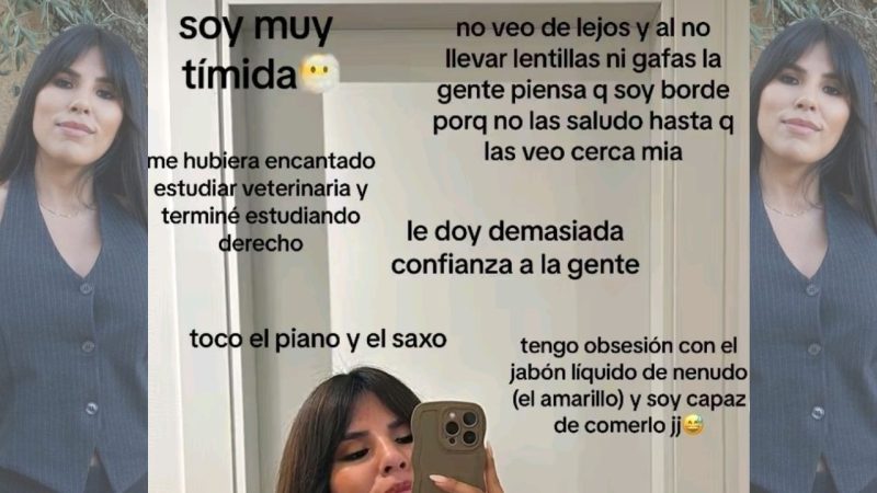 Luego, habla de su carrera, ella estudia Derecho y está a poco tiempo de recibirse, pero su sueño siempre fue ser veterinaria, pero hizo un cambio en sus estudios. Otra de sus verdades, contadas por ella misma, es que le da confianza a las personas al abrirse con ellos. A pesar de ser adoptada, lleva en su ADN algo de música, toca el piano y el saxo. Y la que más llamó la tención y que se destacó como raro, es el fanatismo que tiene por el jabón líquido de nenudo, hasta incluso dijo que es capaz hasta de comerlo. Algunas verdades que la influencer hizo públicas.