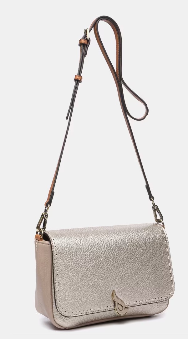 Si de vez en cuando prefieres salir con un bolso más pequeño, este será una de las mejores opciones a tener en cuenta. Una bandolera pequeña en tonos metalizados con líneas sencillas y un formato compacto que aporta un extra de luz gracias a sus acabado metalizado. Tiene una asa regulable y extraíble y cuenta con diferentes compartimientos para una mayor organización. Si quieres hacerte con este modelo, que sepas que aquí es donde vas a poder encontrarlo.