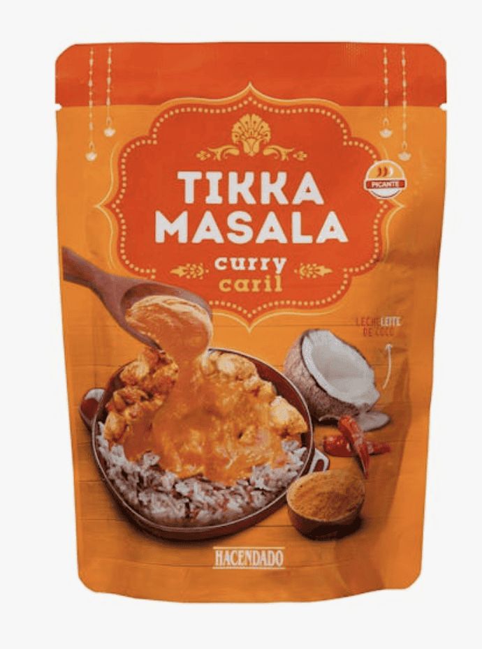 La salsa curry Tikka Masala Hacendado picante, ahora disponible en Mercadona, es una opción popular en la cocina india. Elaborada con una mezcla de tomate, leche de coco, especias y hierbas, esta salsa cremosa ofrece un sabor intenso y ligeramente picante. Es perfecta para acompañar una variedad de platos, como pollo, arroz, verduras o legumbres, agregando un toque exótico y delicioso. Esta salsa ha ganado gran popularidad en los establecimientos de Mercadona, siendo una de las más vendidas actualmente. Además, su precio es muy asequible, solo 2 euros por un paquete de 180 gramos. Es una opción nutritiva ya que no contiene gluten ni lactosa, es baja en grasas saturadas y rica en fibra. Además, es apta para vegetarianos y veganos, y su fecha de caducidad es de 30 días desde su fabricación, recomendándose conservarla en el frigorífico.