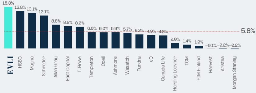 La estrategia de inversión de la gestora nórdica Evli en los mercados emergentes y países fronterizos, Evli Emerging Frontier, alcanzó a cierre de febrero 2024 una rentabilidad anualizada del 15,3% neta de comisiones de gestión y otras, en los últimos 5 años, siendo el primer fondo por rentabilidad entre sus comparables*.