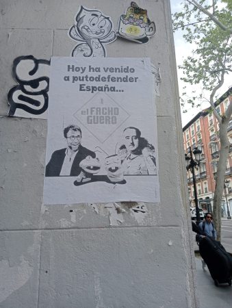 A David Broncano le llueven piedras mediáticas mientras su adversario Pablo Motos recibe metralla ciudadana como la que se ha advertido estos días en la madrileña calle Atocha, en la que han aparecido carteles que renombran a ‘El Hormiguero’ como ‘El Fachoguero’ con Franco como invitado «a putodefender España».