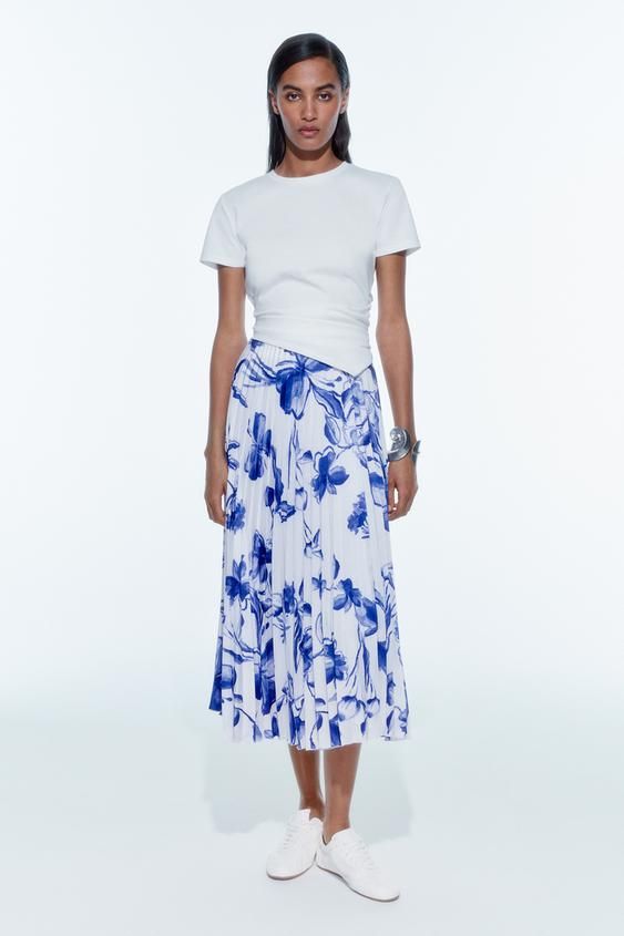 La Falda Plisada Estampado Floral de Zara es una prenda encantadora y versátil que añade un toque de elegancia primaveral a cualquier conjunto. Esta falda midi de tiro alto presenta una cintura elástica y pliegues que le dan movimiento y fluidez a tu look. Además, cuenta con un forro interior que garantiza comodidad y opacidad. Con un precio asequible de 35,95 EUR, esta falda ofrece una excelente relación calidad-precio, ya que está elaborada con materiales de alta calidad que aseguran durabilidad y estilo duradero.