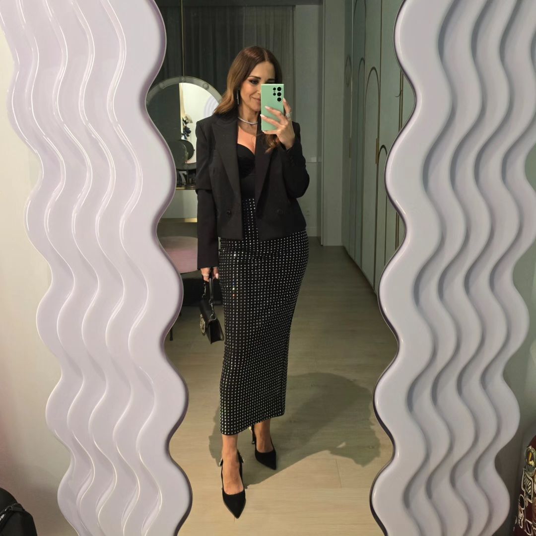 ¡Prepárate para deslumbrar en tus salidas nocturnas de primavera con el último look de Paula Echevarría! La reconocida presentadora ha vuelto a cautivar a sus seguidores con un outfit que combina la elegancia del negro con destellos de brillo y sofisticación. En esta ocasión, Paula ha optado por una falda midi negra de Bershka, que se convierte en la pieza central de su conjunto, destacando su versatilidad para las noches más especiales.